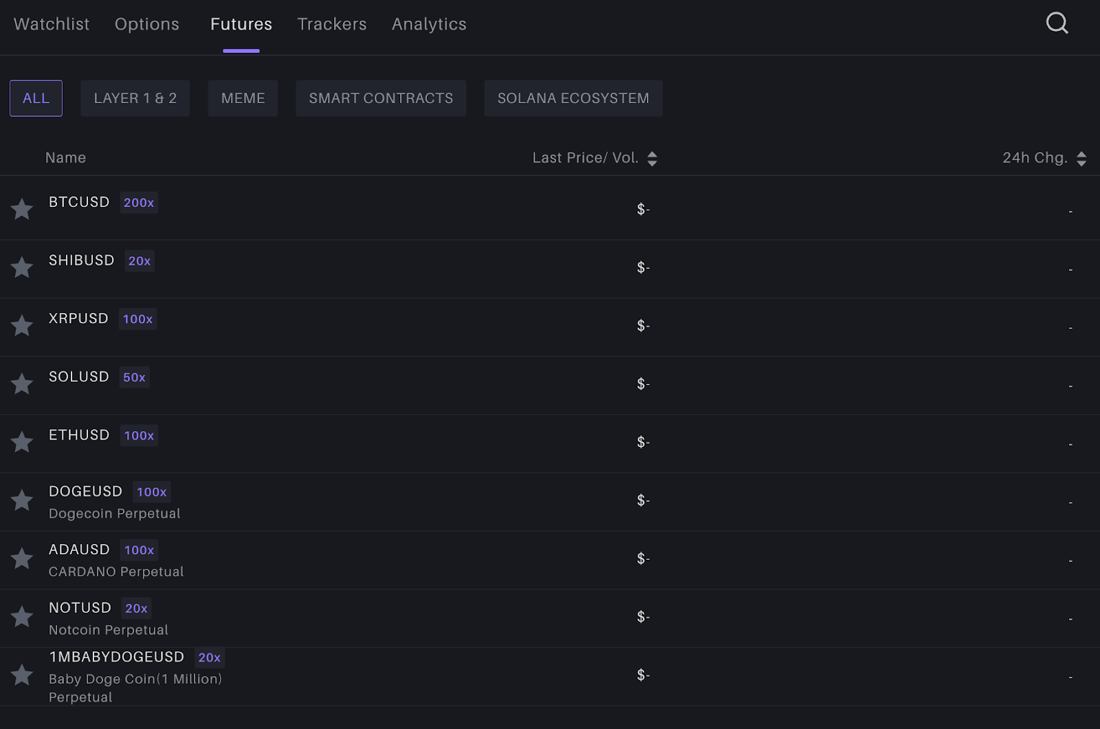 - Pick the crypto derivatives you want to explore – from Bitcoin (BTC) and Ethereum (ETH) to various altcoins. Demo trading includes futures, perpetual contracts, and options.